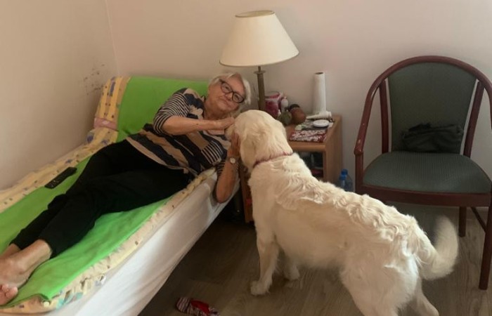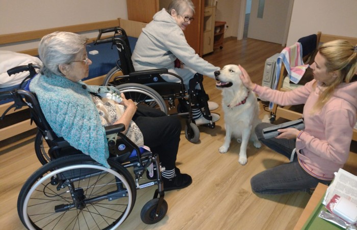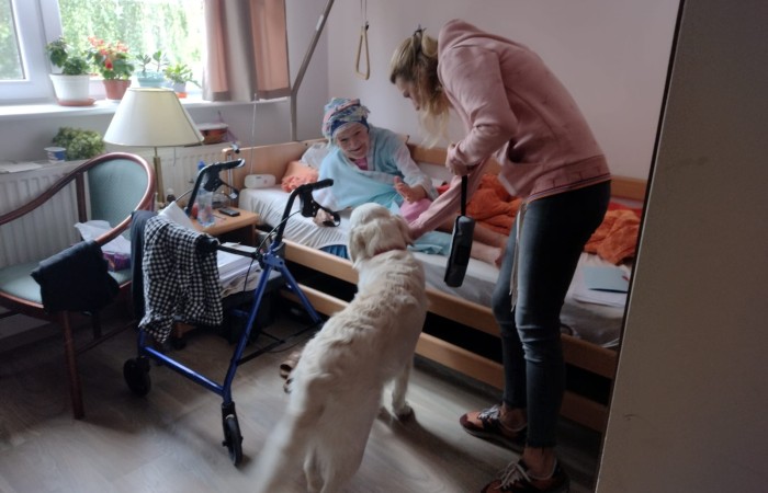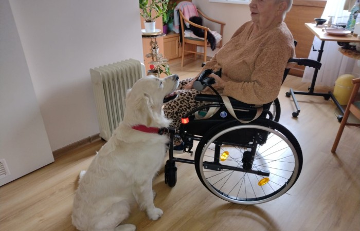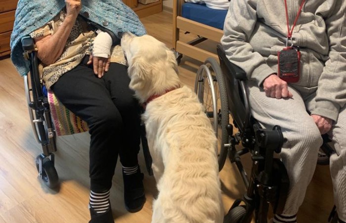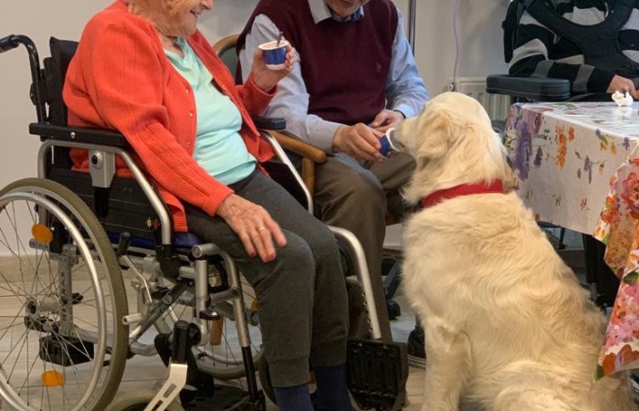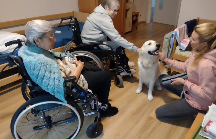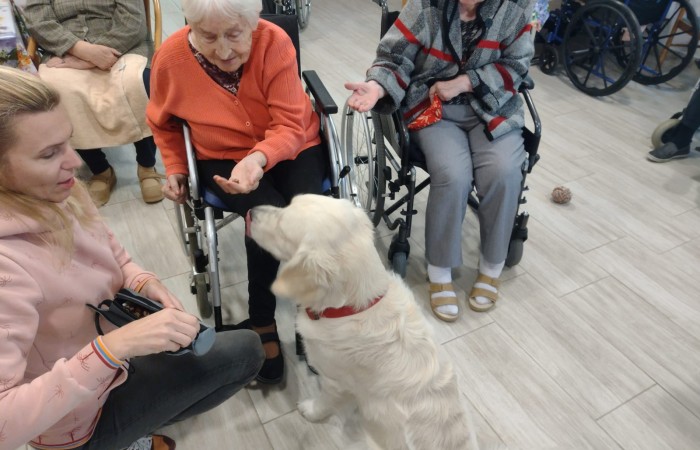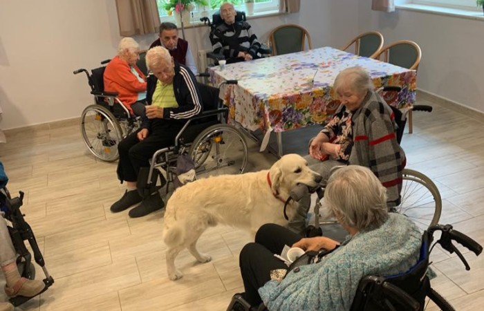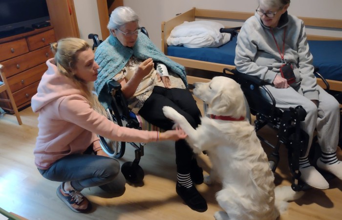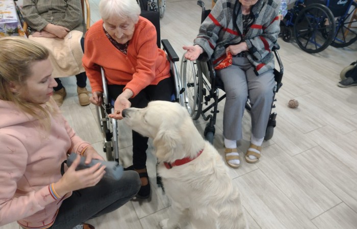 Pies Golden Retriever w odwiedzinach u seniorów